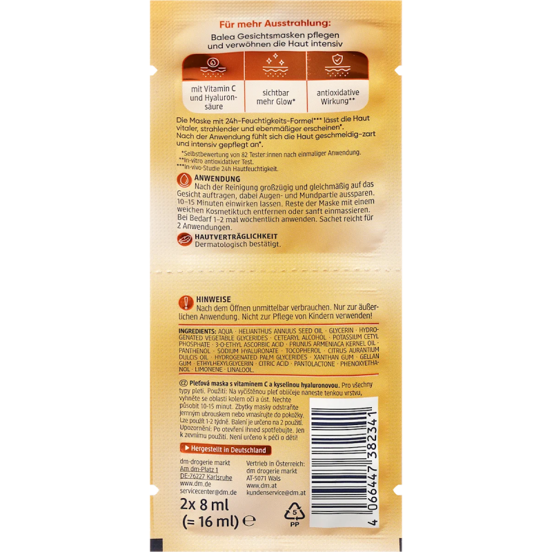 Die Vitamin C Gesichtsmaske mit 24h-Feuchtigkeitsformel verleiht der Haut einen strahlenden, vitalen und ebenmäßigen Teint. Vitamin C und Hyaluronsäure sorgen für einen sichtbaren Glow und hat eine antioxidative Wirkung. Die Formulierung pflegt und verwöhnt die Haut intensiv und sorgt für ein zartes Hautgefühl. Rezeptur ohne Mikroplastik und wasserlösliche synthetische Polymere